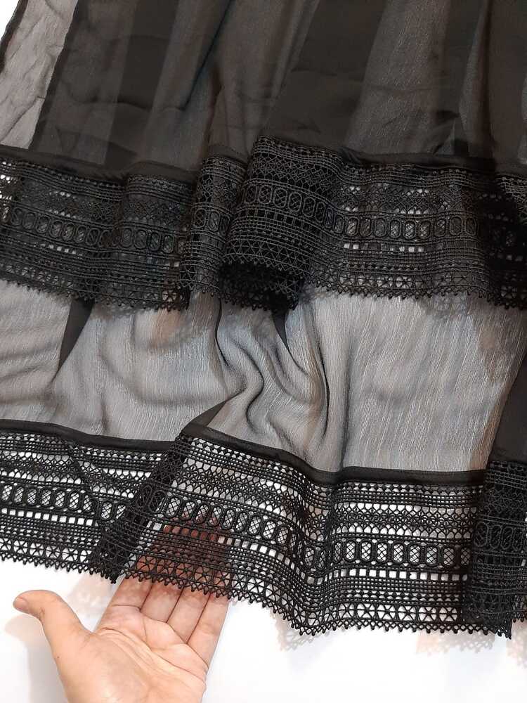 Chiffon Dupatta With Bottom Lace - Black - ZD850
