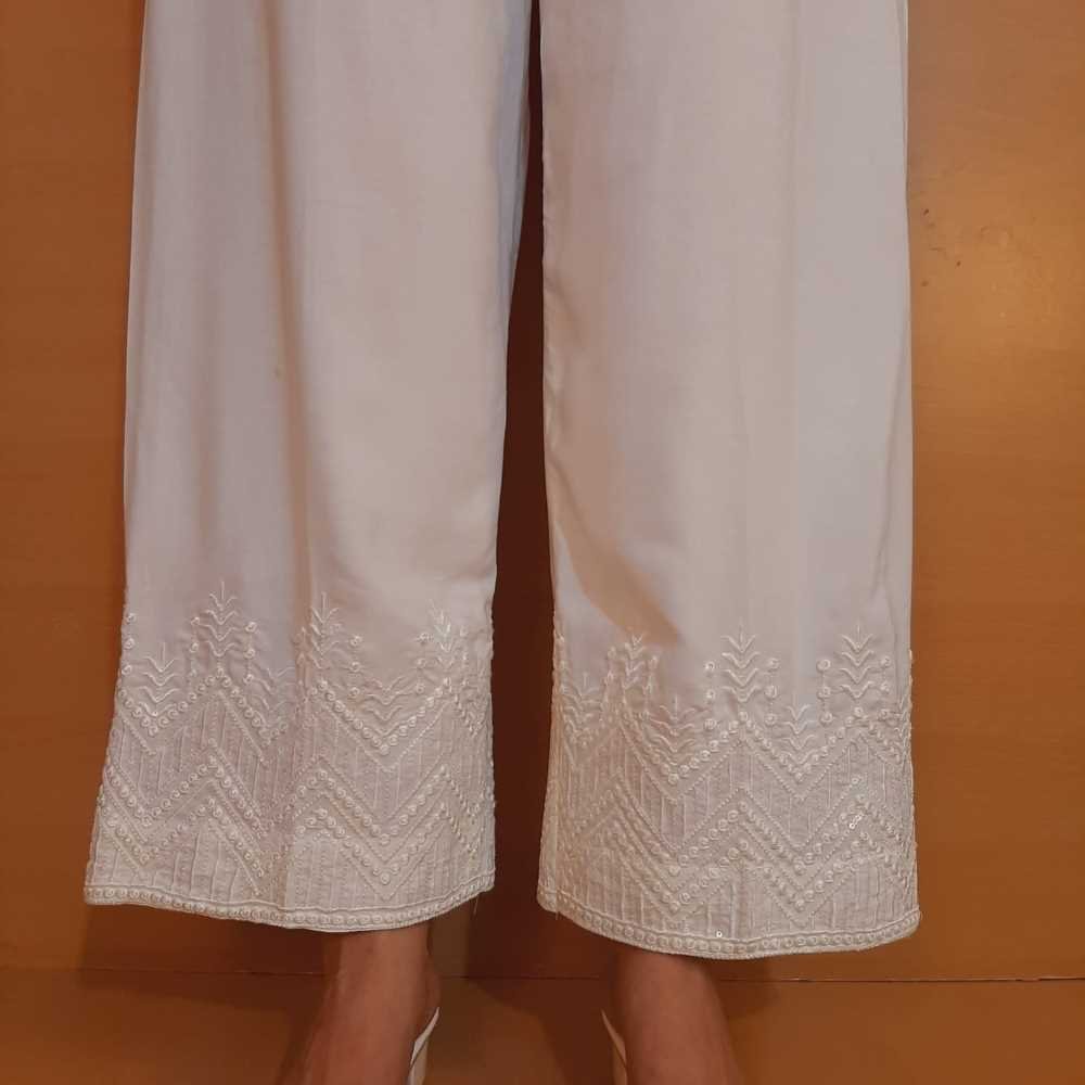 Cotton Palazzo With Bottom Lace - White - ZT308