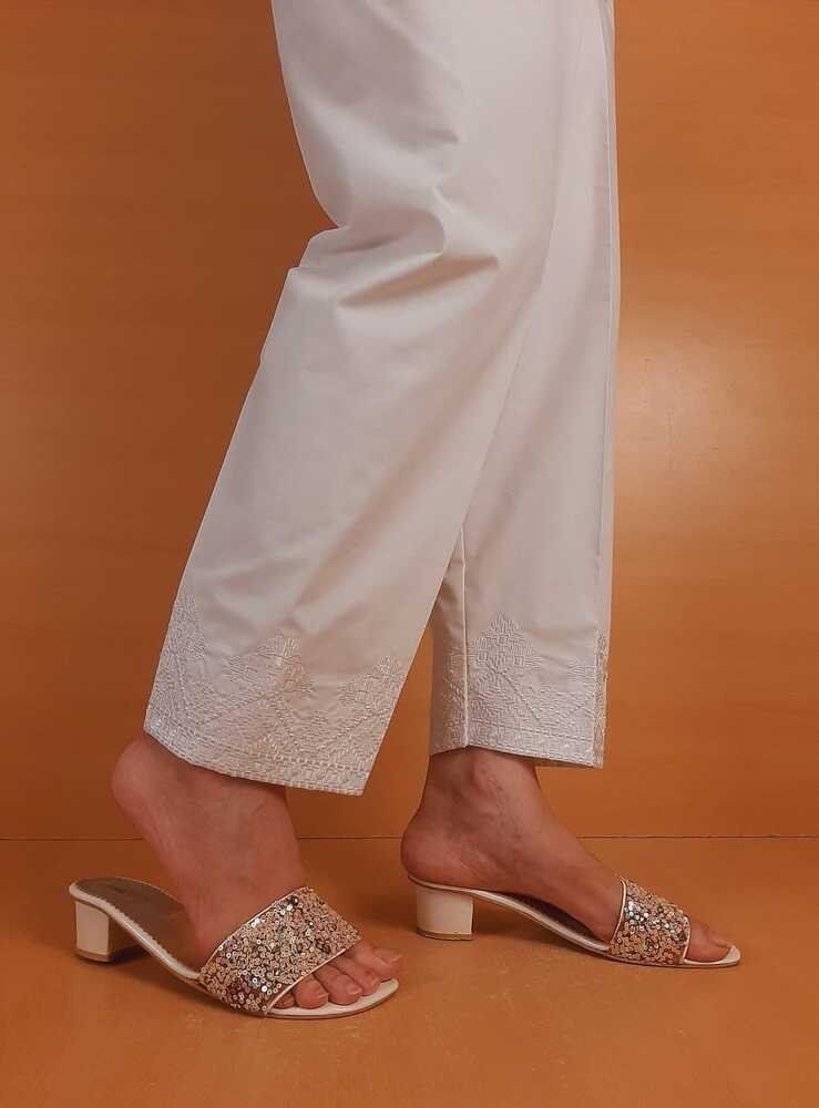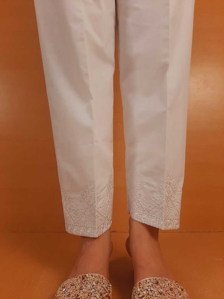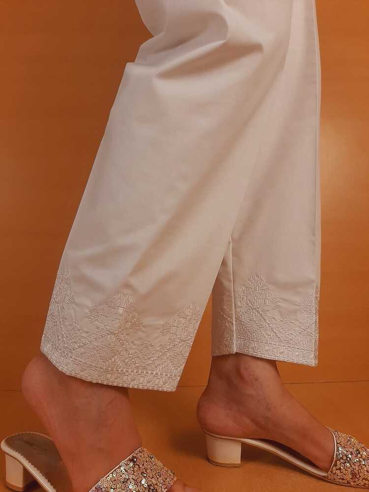 Cotton Palazzo With Bottom Lace - White - ZT308