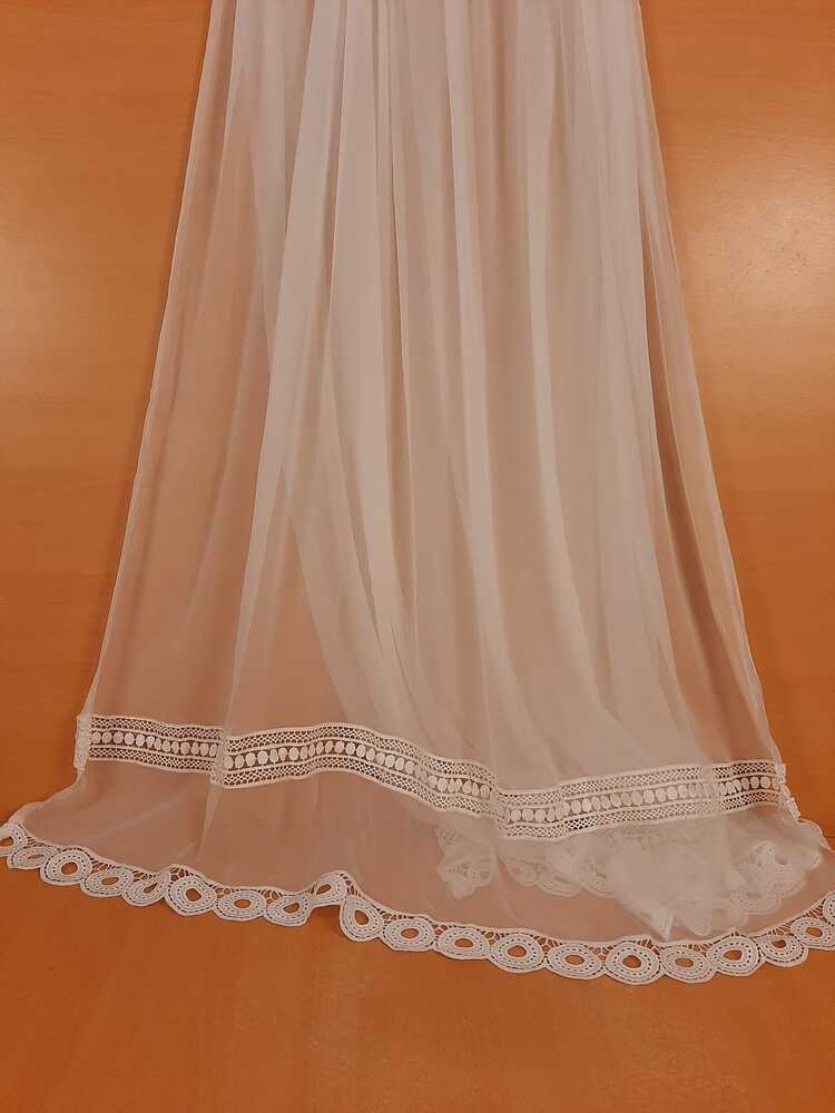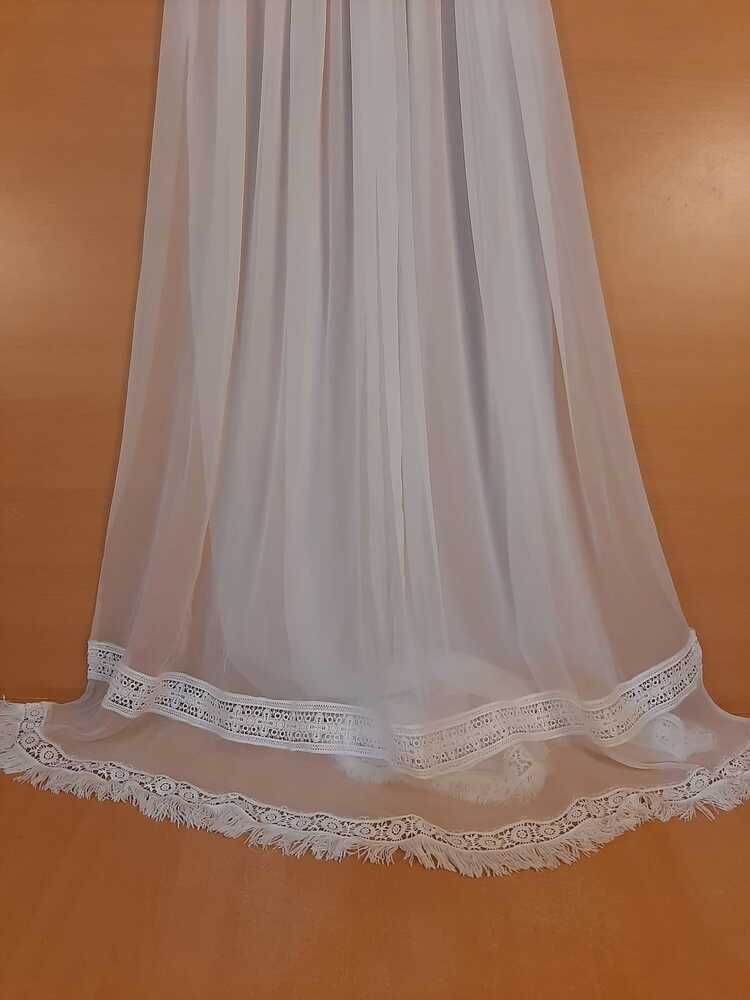 Laces Embellished Chiffon Dupatta - White - Dyeable